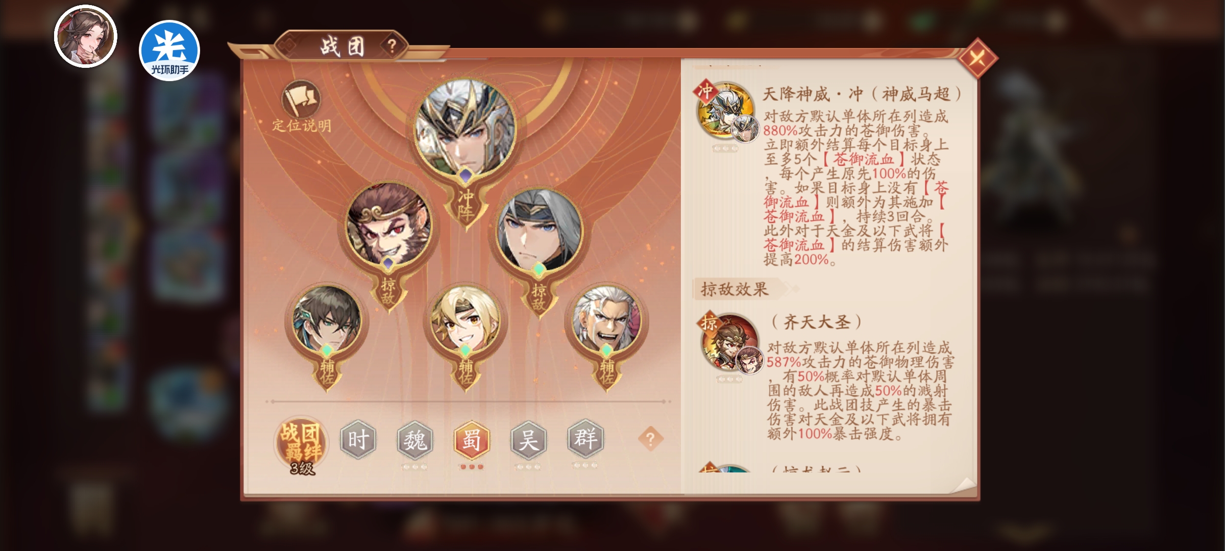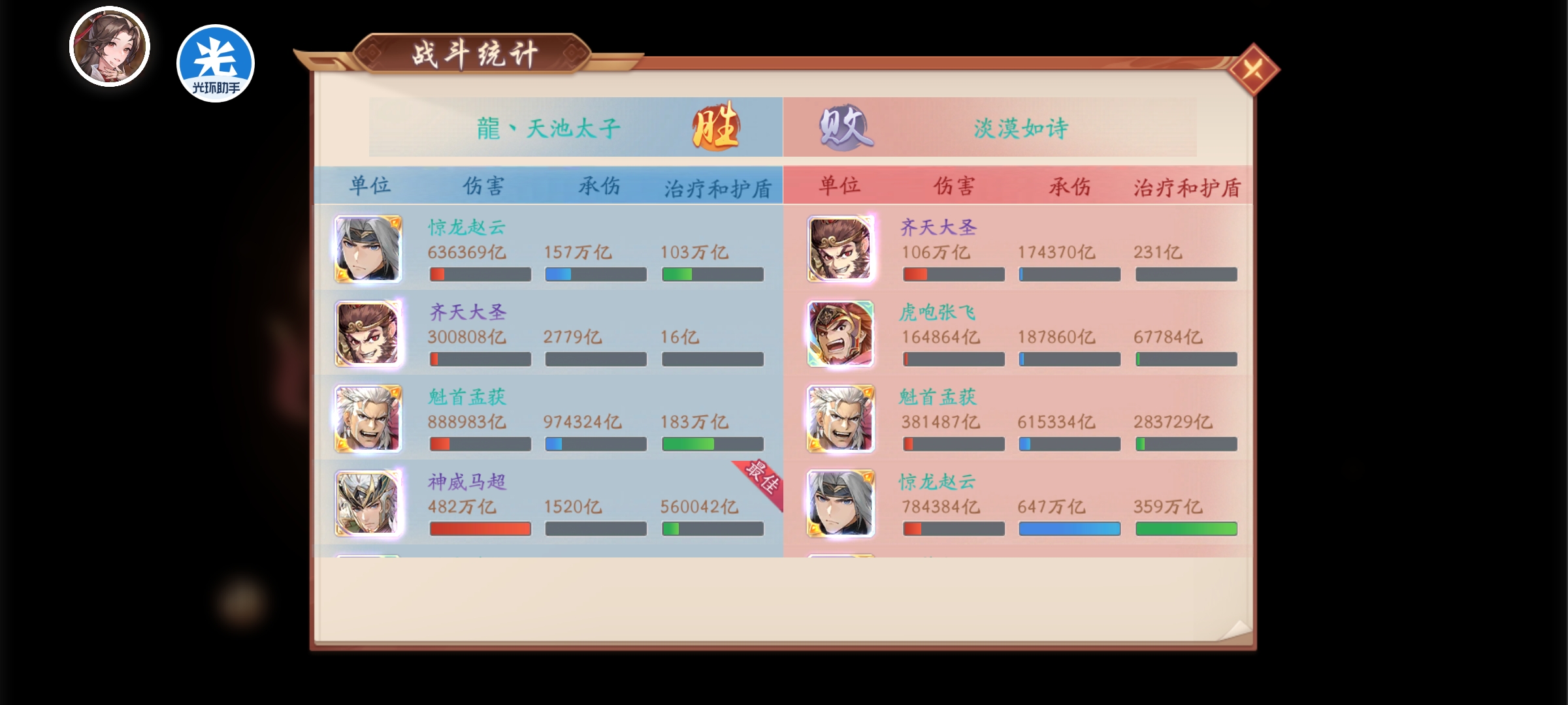 苍金血脉的压制让赵云越来越乏力,等马超的攻击高过赵云就可以主马超了。现阶段白嫖玩蜀国体验很不错。