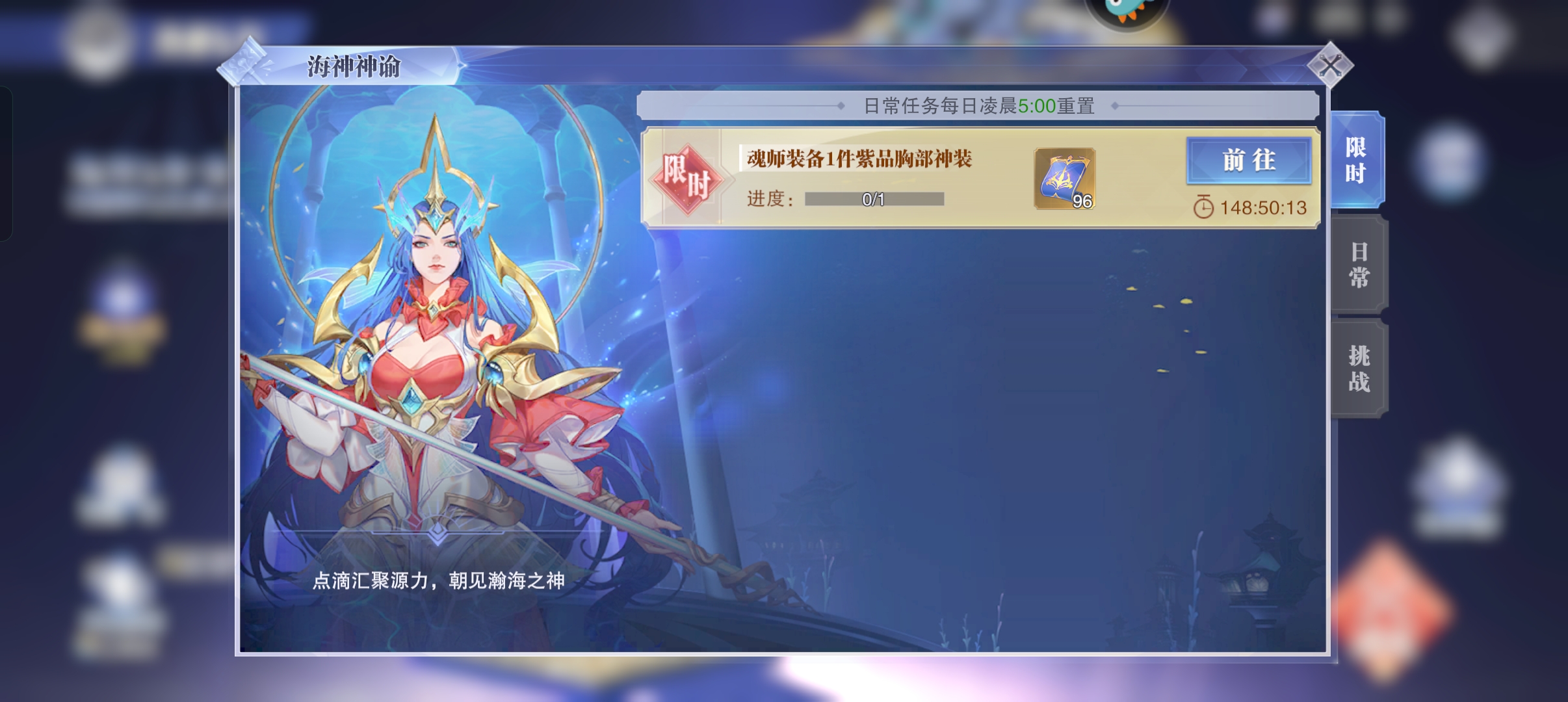 因为神装目前获取的条件只有【大陆征伐】获得,如果想完成这个限时任务,就只能是挑战大陆征伐获得神装然后装配神装完成这个任务就可以,这个任务能获得的【考核信物】非常多。