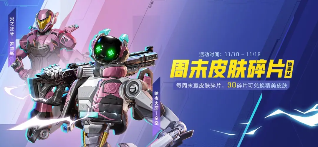 每周末赢皮肤碎片,集满碎片兑换免费皮肤!