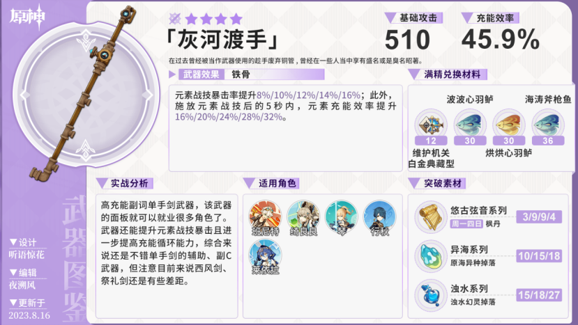 解析:增加回能,降低大招永续的难度,简介降低了充能的难度,在单水入队的情况下比较重要