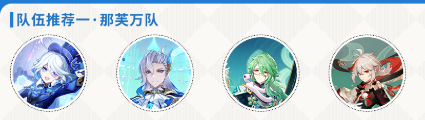 芙宁娜机制灵活,可以组成的队伍搭配有很多,简单为旅行者们举几个例子,权当抛砖引玉