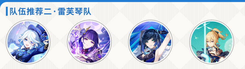 阵容组成:雷电将军、芙宁娜、夜兰、琴