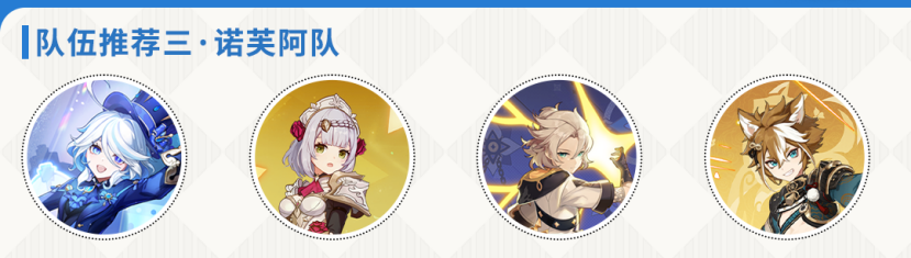 阵容组成:诺艾尔、芙宁娜、阿贝多、五郎