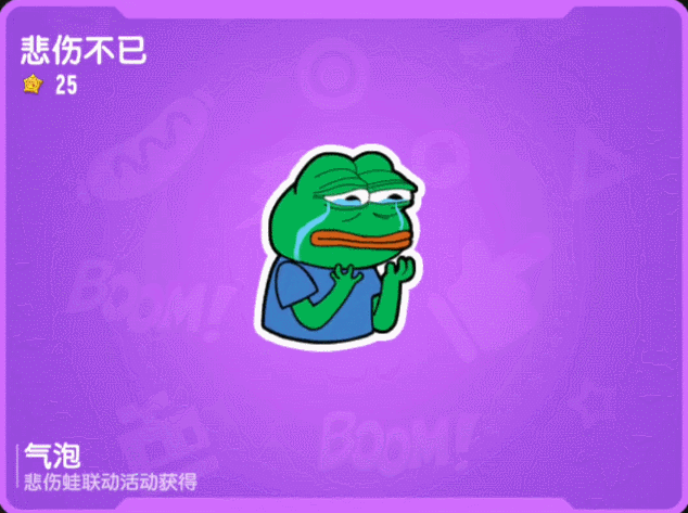 只要完成联动挑战任务,就能获得限时称号、联动淘汰郎、联动气泡表情、联动派对卡背景等好礼,此外悲伤蛙还带来了诙谐搞怪的联动皮肤快来和蛋卷一起看看吧~