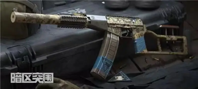 白狼连队·VSS使用了以黄色为主旋律,棕色点缀的迷彩风格外观,弹夹上的白狼连队胶布logo和枪托上的防滑胶布,更为本款枪皮增添了不少“旧感”。
