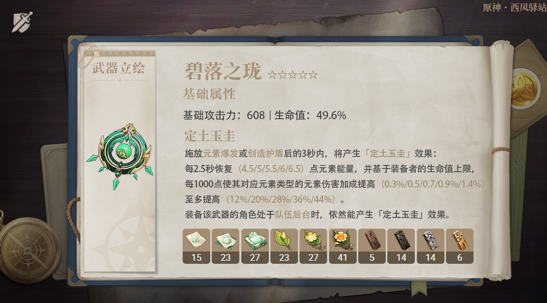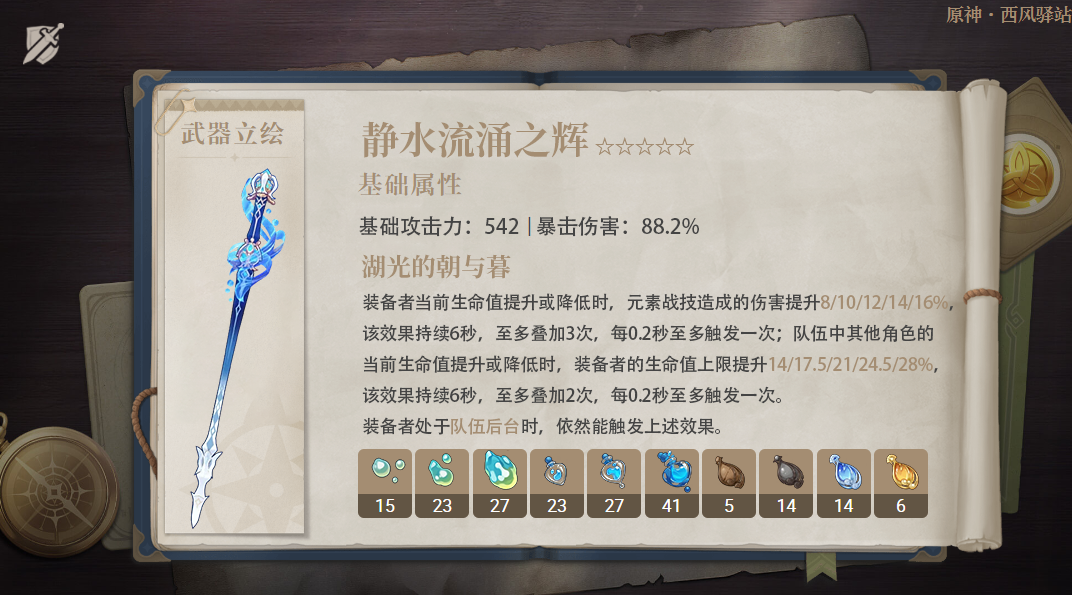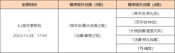 *PS:其中「单手剑·静水流涌之辉」「法器·碧落之珑为限定武器。