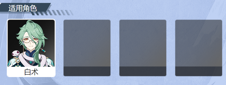 其他生命治疗向的法器角色不如佩戴能够提升“治疗加成”的「不灭月华」,或施放元素爆发后持续回能/治疗全队的「试作金珀」,基本不会考虑佩戴该武器,即使是白术自身,「试作金珀」也有极高的适配性。