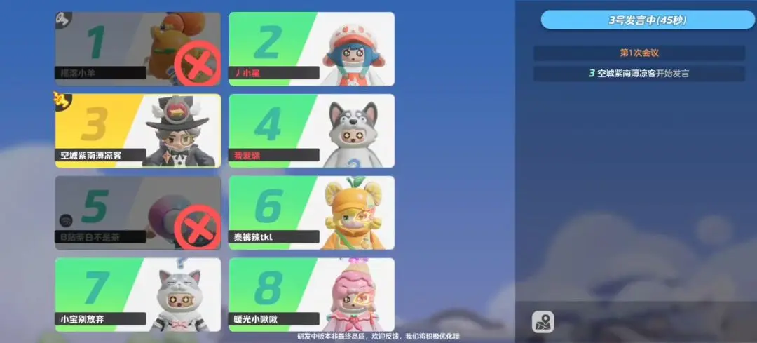 小技巧二:第一轮结束后,好人星宝基本心中就有了自己的同伴人选,所以可以和同伴一起做任务,进行互证,进一步排清狼坑。