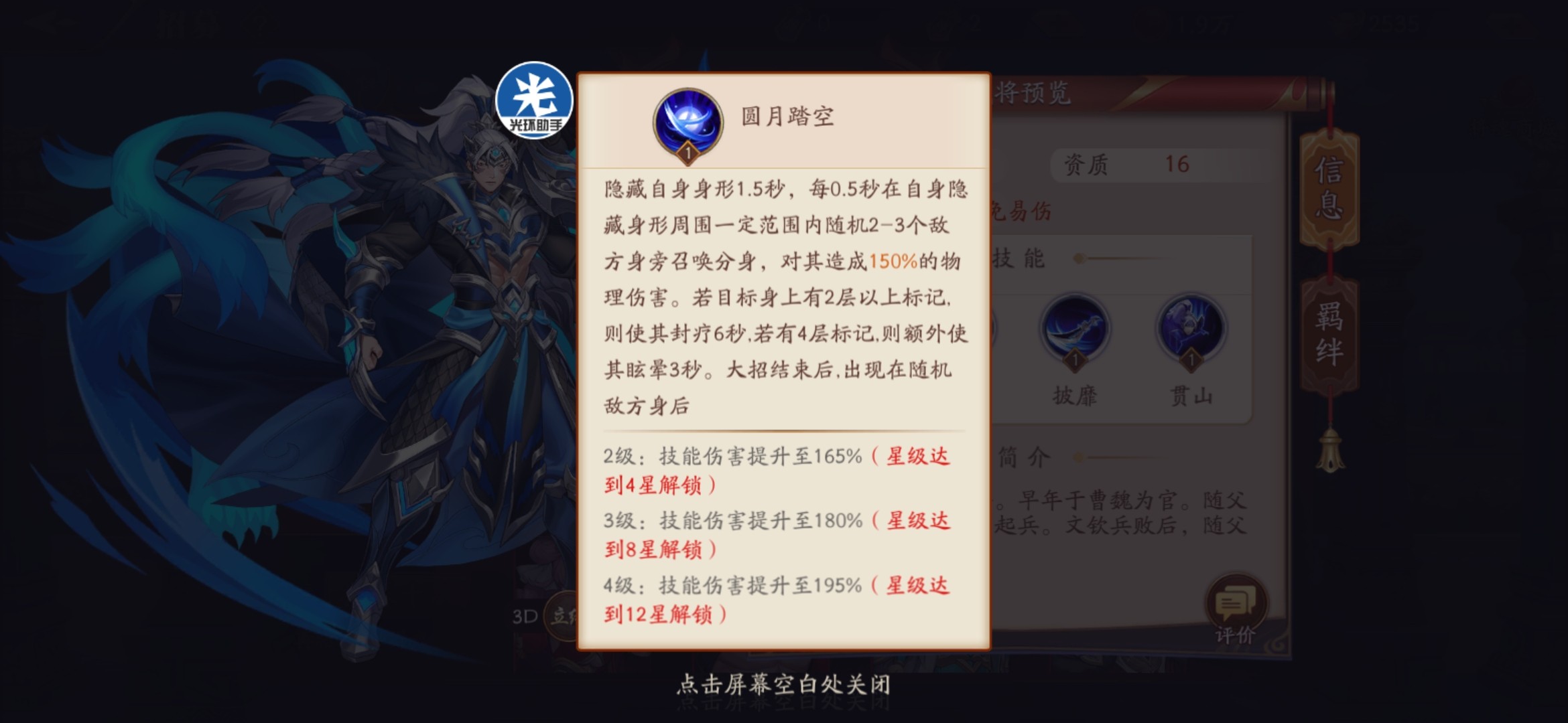 文鸳的怒气技能,释放后隐藏自身1.5秒,每0.5秒在自身周围2-3个敌方身旁召唤分身造成伤害,根据印记数量额外造成不同效果,技能释放完毕后出现在随机敌方单位身后,典型的刺客技能——隐身,为了使技能最大化收益最好是在人群里释放,所以此处应该配合好一技能的突进,效果会更好,最好突进到后排,再根据印记造成额外debuff,最好是叠满4个印记,眩晕后排可以有效提升我方生存。