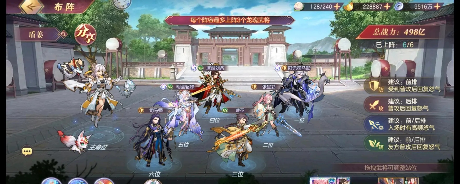 大概就这些了,有啥问题可以帖子问,能回答的我会尽量去回的,楼主家境贫寒,星彩只有2命,司马师出来后,内战就只能概率打赢一些3命的神念了,5命神念完全没戏,就不放战绩图了。