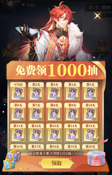 每日登录可累计免费领取1000抽!