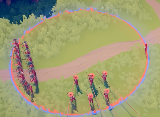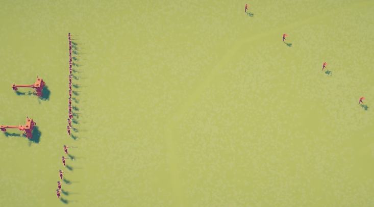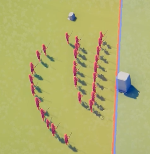 阵容:1旗手、2滚桶兵、1雷神、1农民、其他全长戟兵