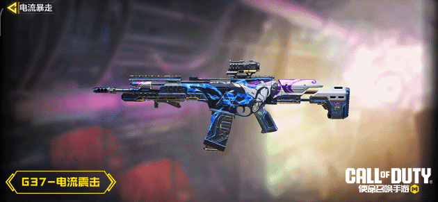 G37-电流震击采用了冷色调的涂装设计,蓝色的电流在枪身流淌,形成华美的光晕,配合淡紫色的花纹装点,更显神秘!