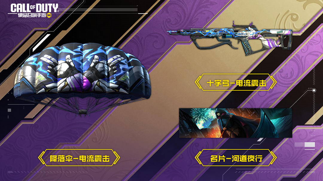 在本次电流暴走活动中,还有降落伞-电流震击、十字弓-电流震击、名片-河道夜行等精美奖励,等待与战士们一起闪击敌人!