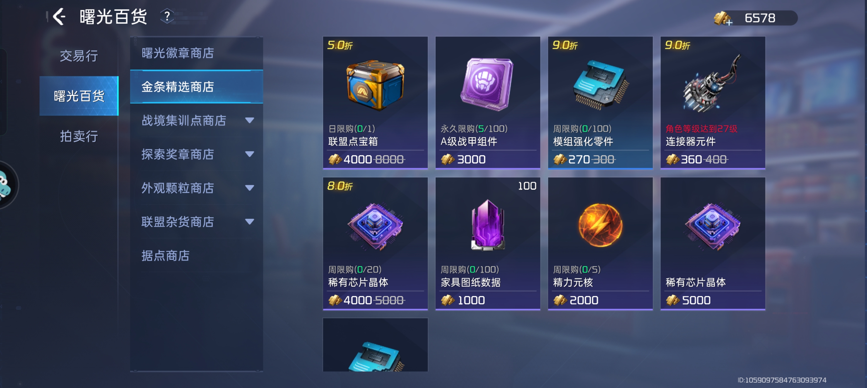①联盟杂货:永久限购的武器配件都可以买。然后每天【电池】和【特蒙斯刻印】买满。