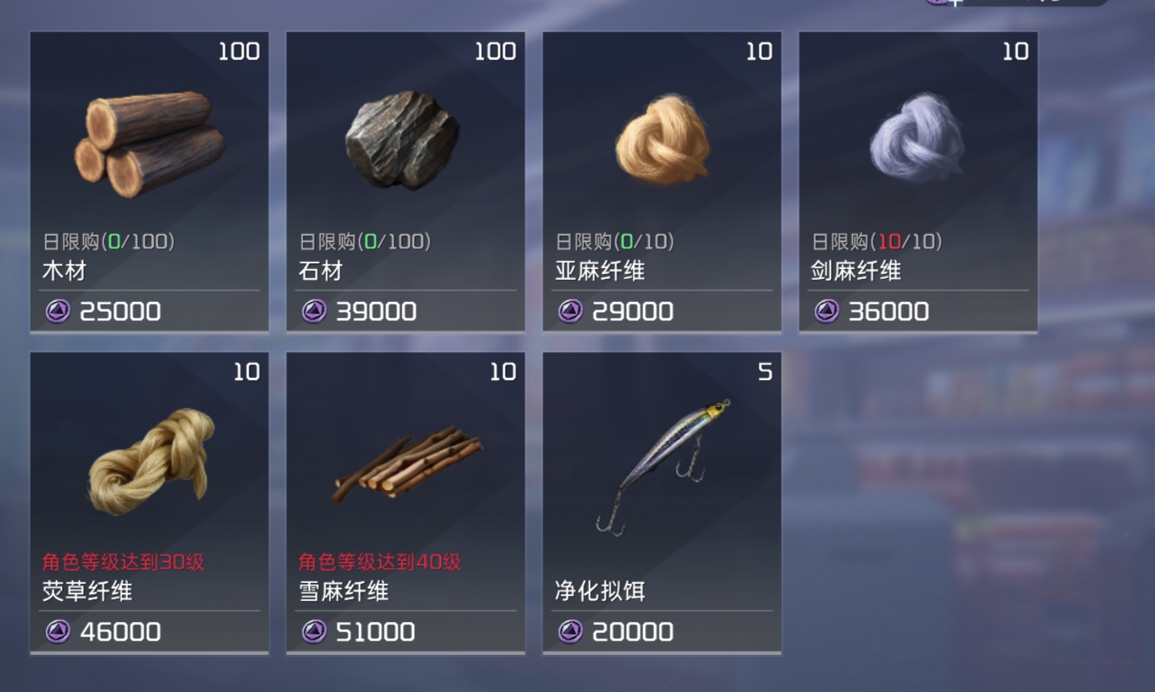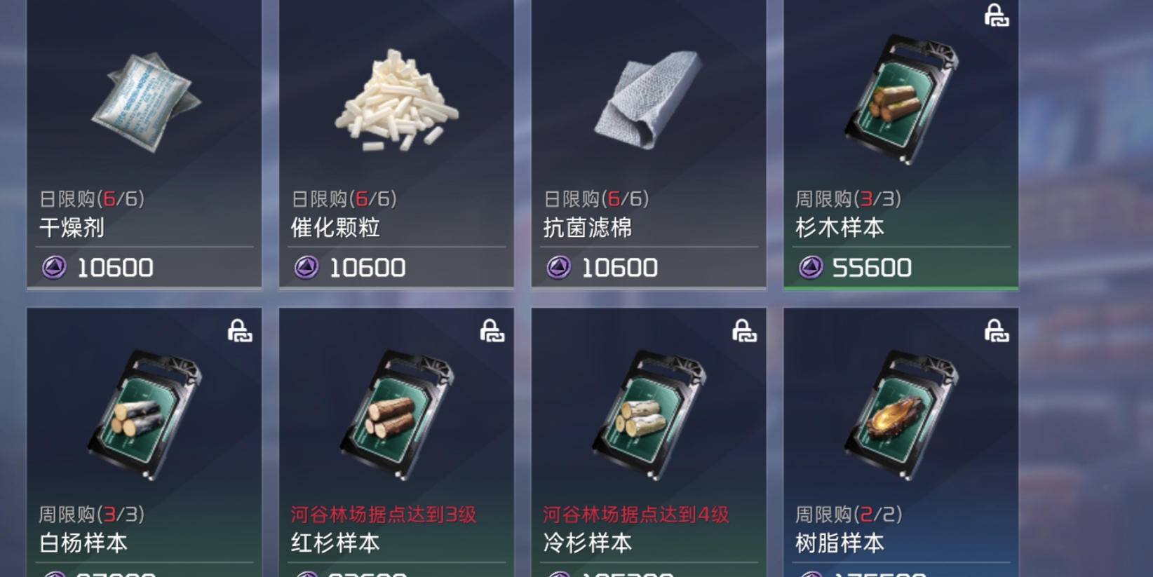 ②基础物资:根据自己的需求买,因为物资也不是算很稀有的资源,缺什么就换什么就行了。