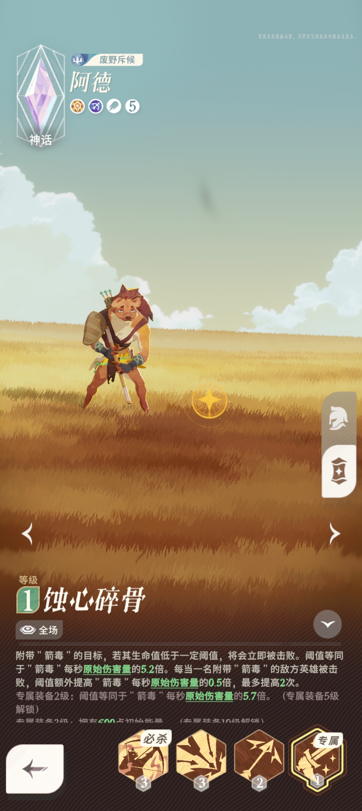 加强普攻:敌人提前附带箭毒。三连普攻伤害最高为 3 次 x204% 攻击力 x1.5 倍=908% 攻击力。
