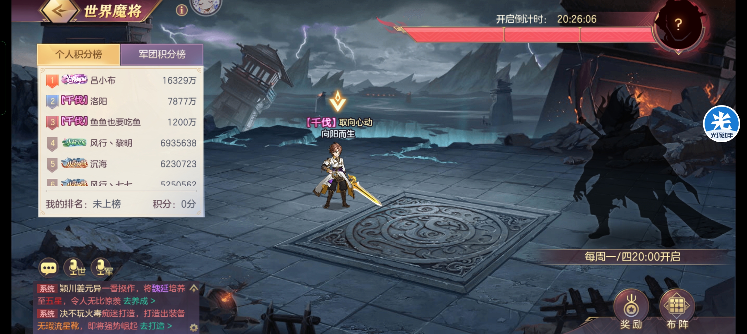 世界魔将可以通过挑战魔将和抢夺玩家获得积分,结束后根据军团排行和个人排行分别发送奖励