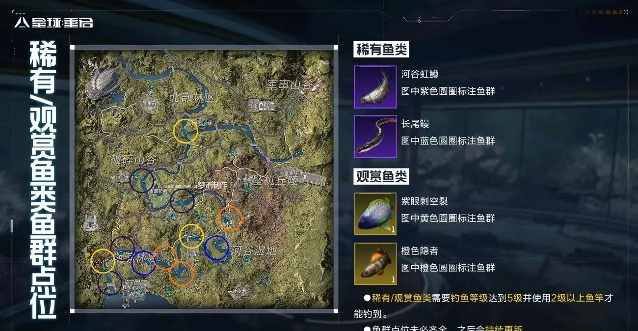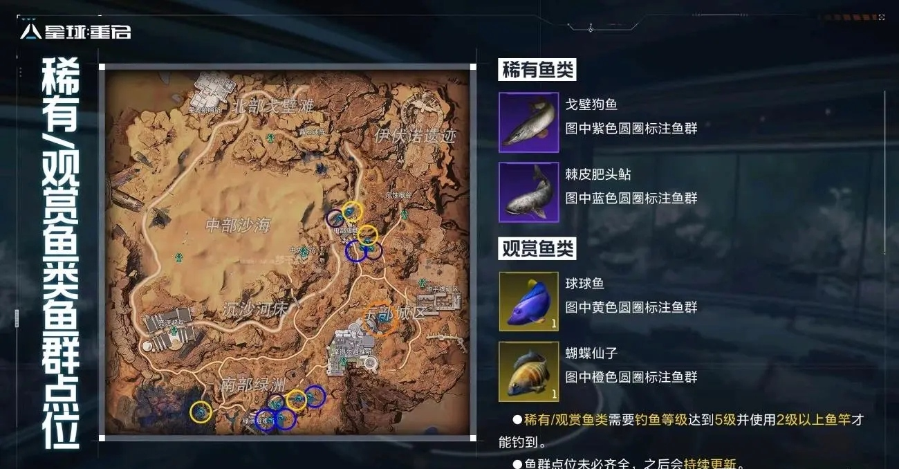 关于钓鱼的相关攻略炽热Lior发布于 2023-11-20关注鱼饵是固定的,鱼竿有等级,想钓高级鱼必须有二级鱼竿,也就是钓鱼等级到三级,然后去高级鱼刷新点,小地图出现蓝色带框钓鱼点说明能钓紫鱼,小地图出现金色带框钓鱼点说明能钓金鱼,刷新点不一定能刷新钓鱼点,刷新点如图 转载自:折刃S