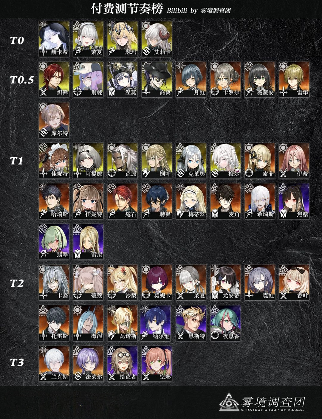 【雾境序列节奏榜】罗德岛有只猫发布于 2023-11-21关注强度榜基于付费测环境和角色技能强度制作。其中特遣和骑兵两个职业需要操作以及合适的地形才能发挥出最大强度。三星角色因为养成上限低,开荒期结束以后只能在后勤上班,所以并未列入。(但是个别三星后续会有推荐) BY:闪耀龙卷风攻略组