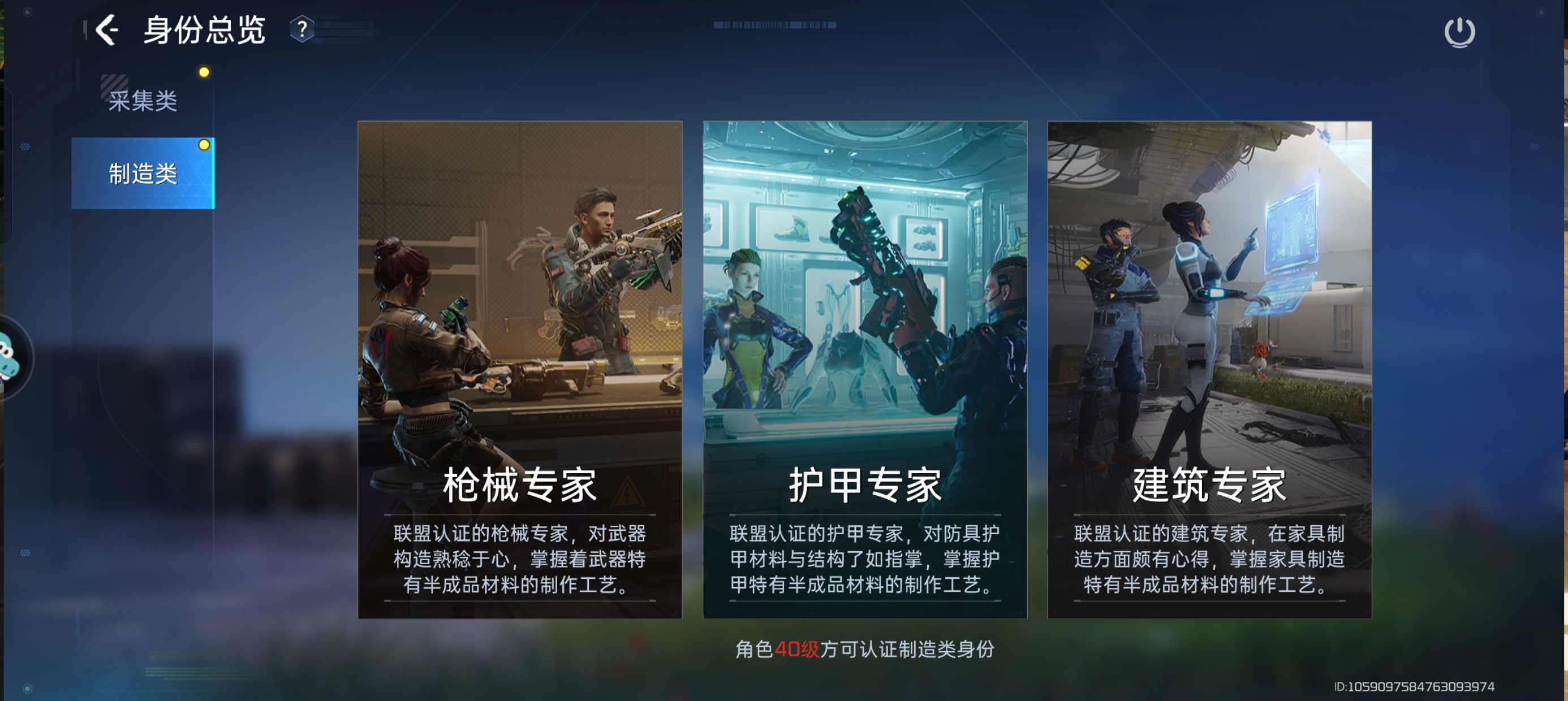 ①我们要明白身份系统分为:采集类和制造类,目前开放的是【采集类】的身份。