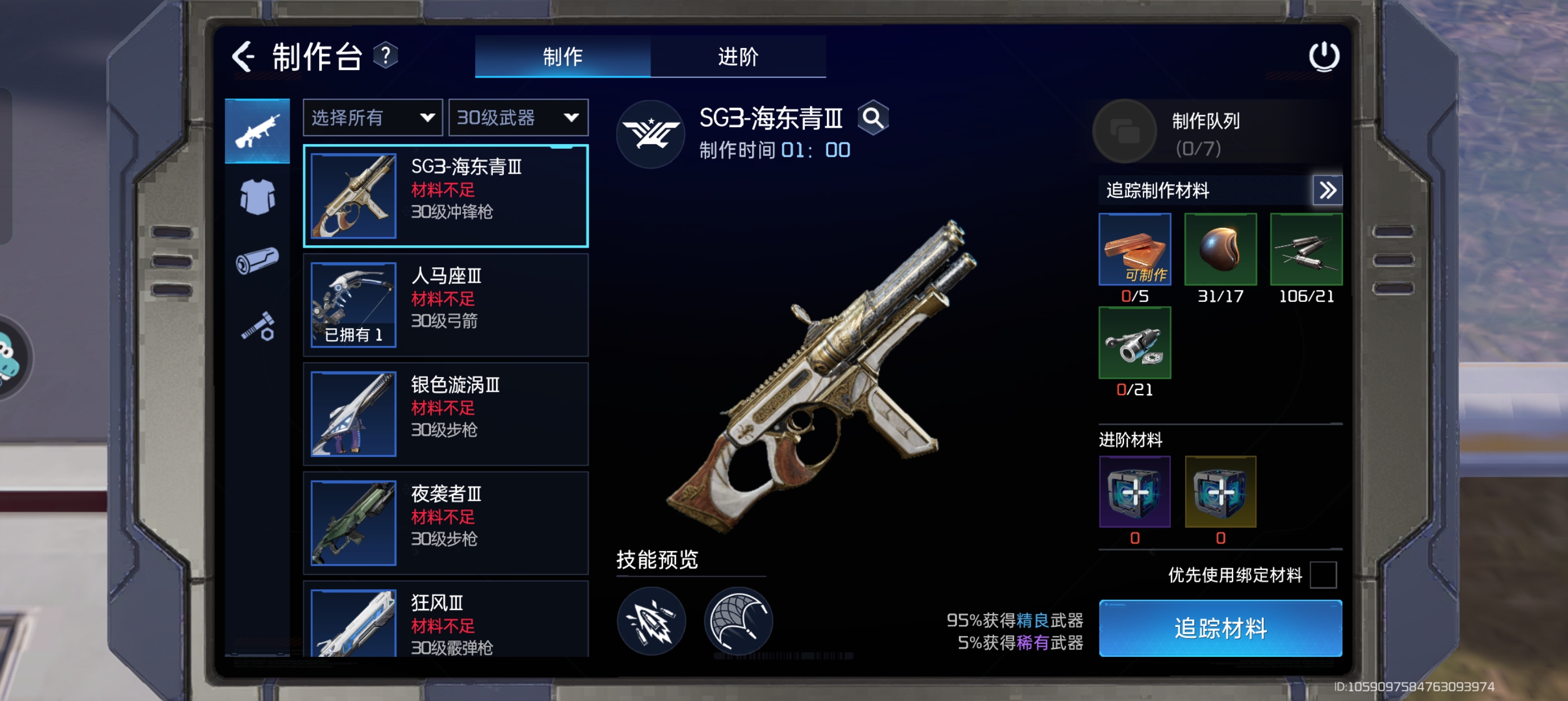 比如【木料专家】是可以生产:头盔、背包、和鞋子的必备材料。