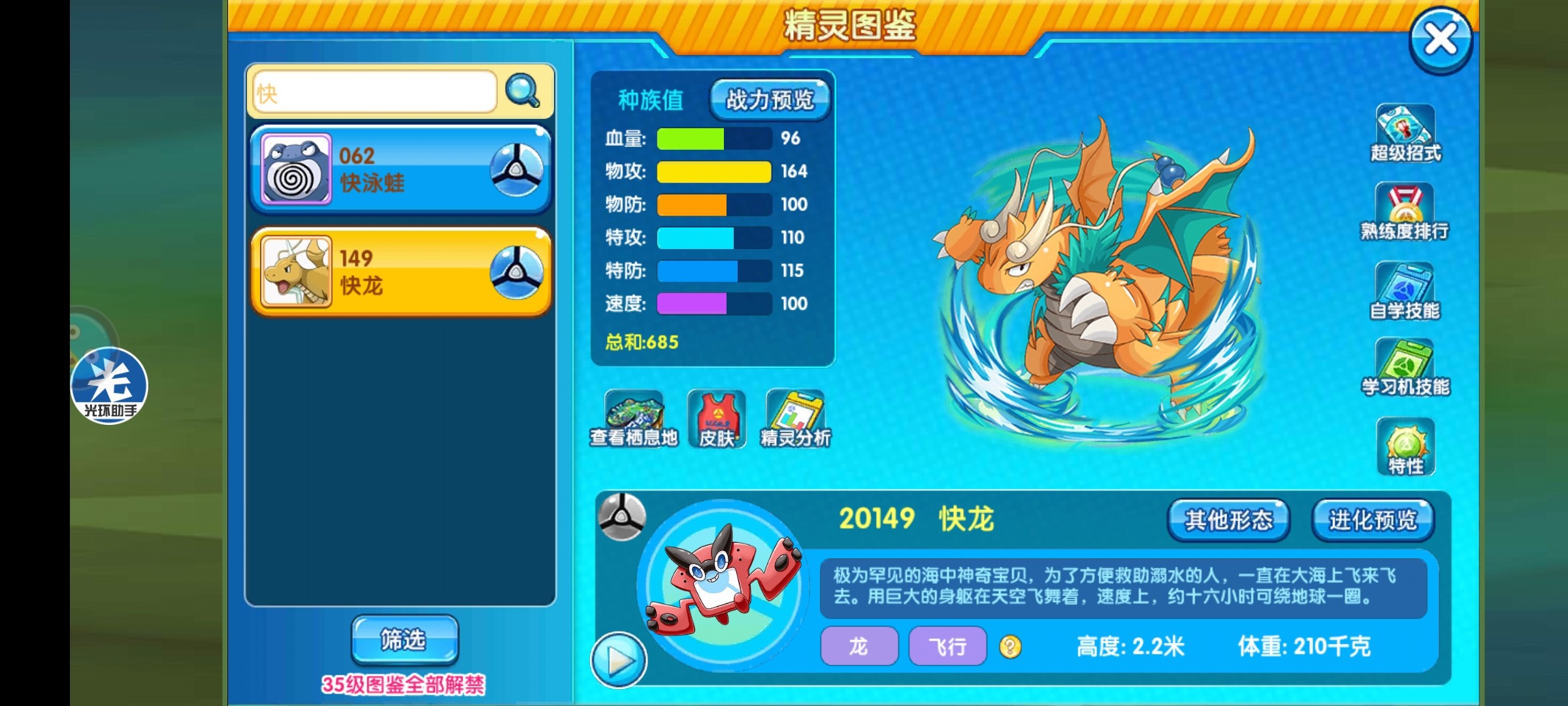 快龙是第一代准神,属于关东地区准神,图鉴介绍说它可以用用16小时就能绕地球1周。如果发现有在暴风雨中遇难的船只,就会将其引导到陆地边上的善良的精灵,快龙一旦发现在暴风雨中被困的船只,就会将其引导到陆地,并会救助在海中溺水的人。快龙在其赖以生存的环境遭到破坏时,会横冲直撞、暴跳如雷,野生的快龙十分罕见,它们通常在海边生活。据传在浩瀚的大海的某处,有个只有快龙聚集生息的岛屿。