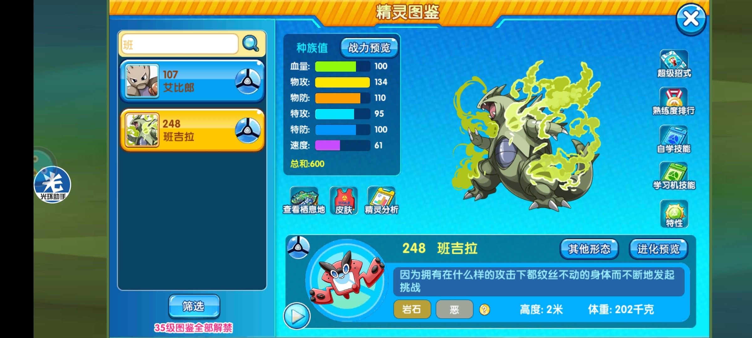 它是城都准神,属于第二世代精灵,也是少见的不是龙属性的准神,这在准神目前的历史上来说是属于“唯二”的,班基拉拥有一副在任何的攻击下都纹丝不动的身躯,有着可以轻易改变四周地形的绝世力量。一旦班基拉发狂,它会在前进的道路上遇山毁山,遇楼拆楼,被认为是一种会移动的灾害型宝可梦。它性格目中无人,会在山中徘徊以寻求战斗对手。但如果遇到的是比自己弱小的对手,它就会视若无睹地离开。