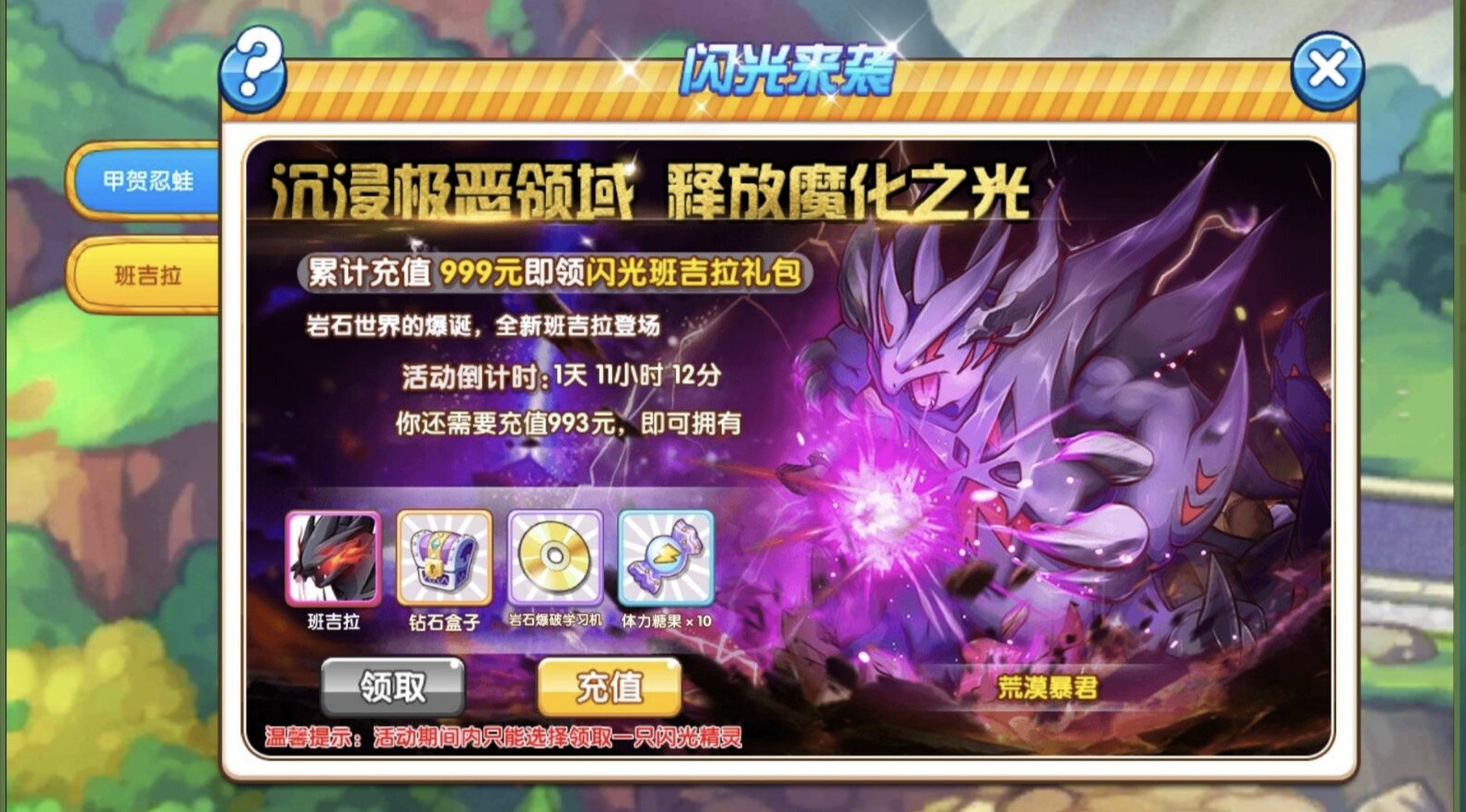 复刻中是前期平民除快龙外是最容易获得的神兽,以前实力强劲,但是后来跟不上版本,策划专门又给它开放了重岩形态,它在复刻中闪光与普通的属性也不相同。