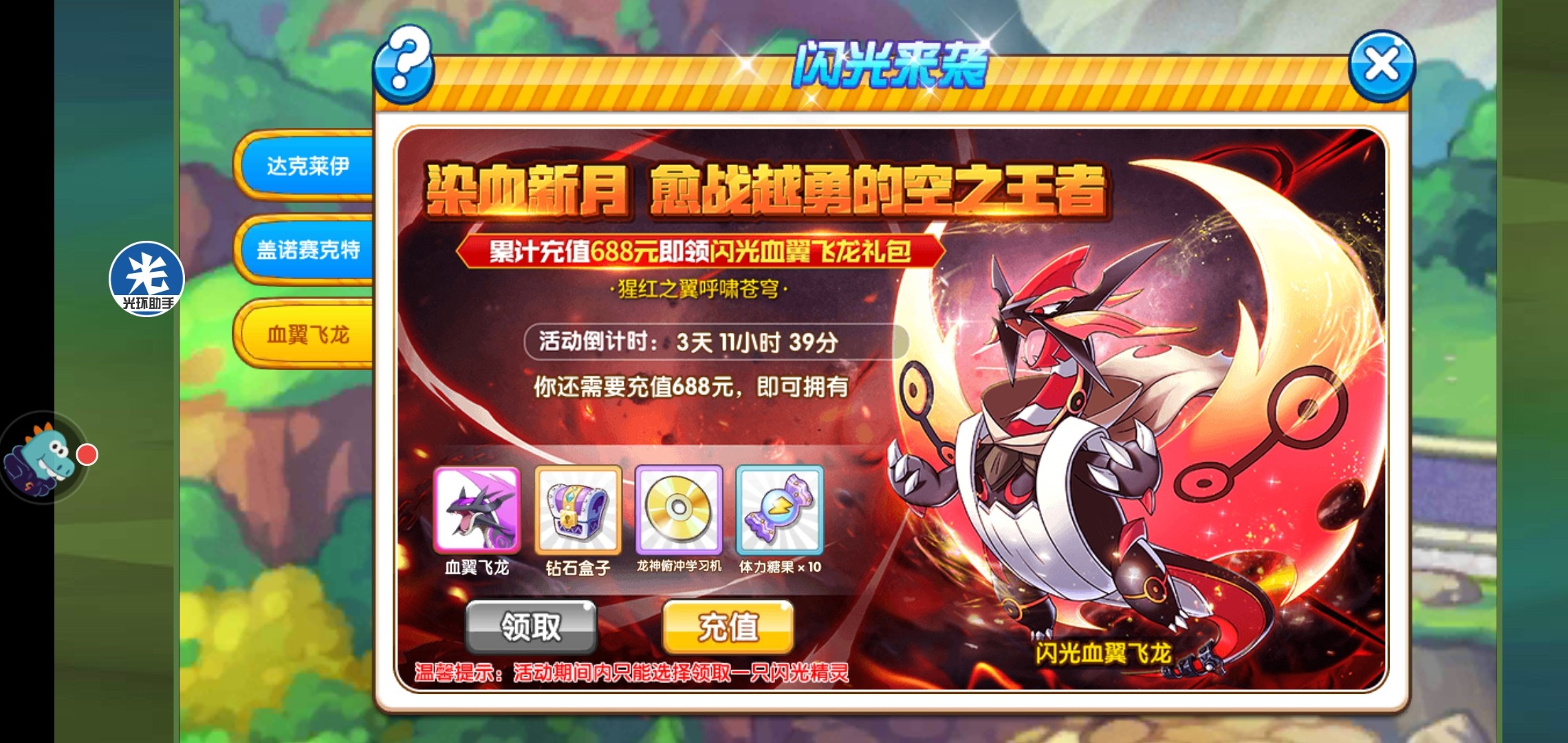 作为和巨金怪并列的芳缘准神,血翼飞龙有着龙属性,它有时也被称为暴飞龙或者暴蝾螈,拥有出色的飞行能力,擅长用锋利的爪子撕裂对手,尖锐的牙齿也令它能够掌握多种啃咬类招式。在飞行过程中,还能够喷出威力强大的火焰。