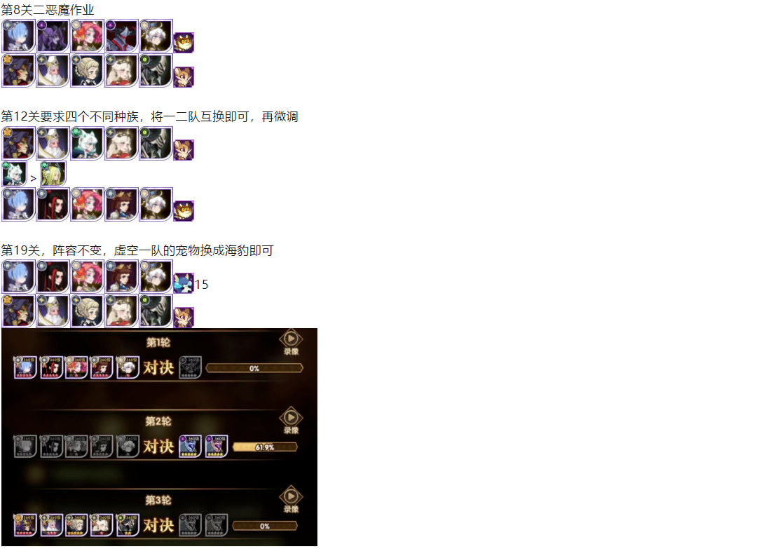 【裁决遗录】硝烟匿境平民作业合集剑与远征 - 攻略星发布于 2023-11-22关注裁决遗录难度不大,但想要拿满全部奖励需要全通关打满33星星。本次活动盒子君给大家带来两套作业,基本不RE,大家可根据自己卡池来选择。 18关截图 作者:光环剑与远征小屋