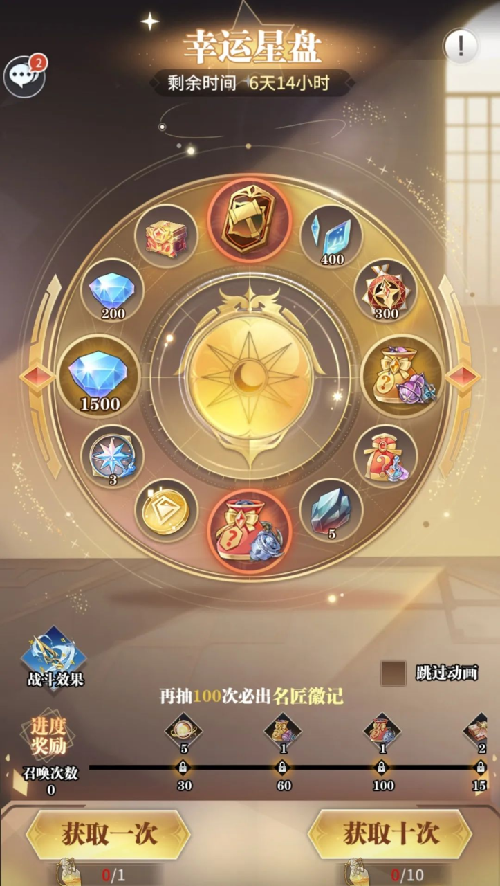 使用「群星之愿」可在「幸运星盘」活动中抽取奖励,奖池包含「名匠徽记」、「神级暗器随机包」等稀有奖励~