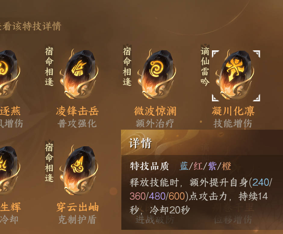 从逆水寒1.21版本更新的龙吟武器新金色特技来看,凝川化凛能增加600点的攻击力,并且冷却只有短短的6秒!