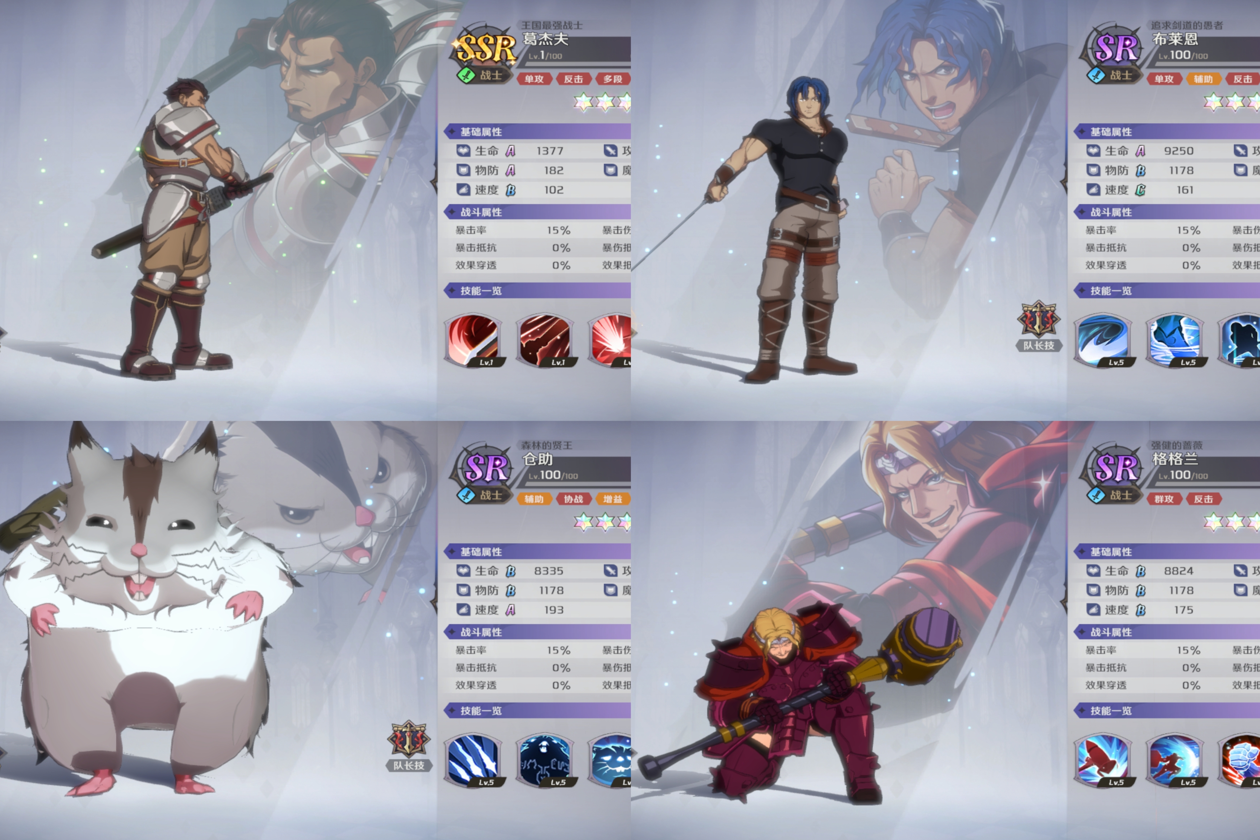 最后搭配仓助百搭辅助减防御,格格兰也是反击队的一员,用来补充队伍的输出,后面也可以替换,因为核心输出还是靠战士长和布莱