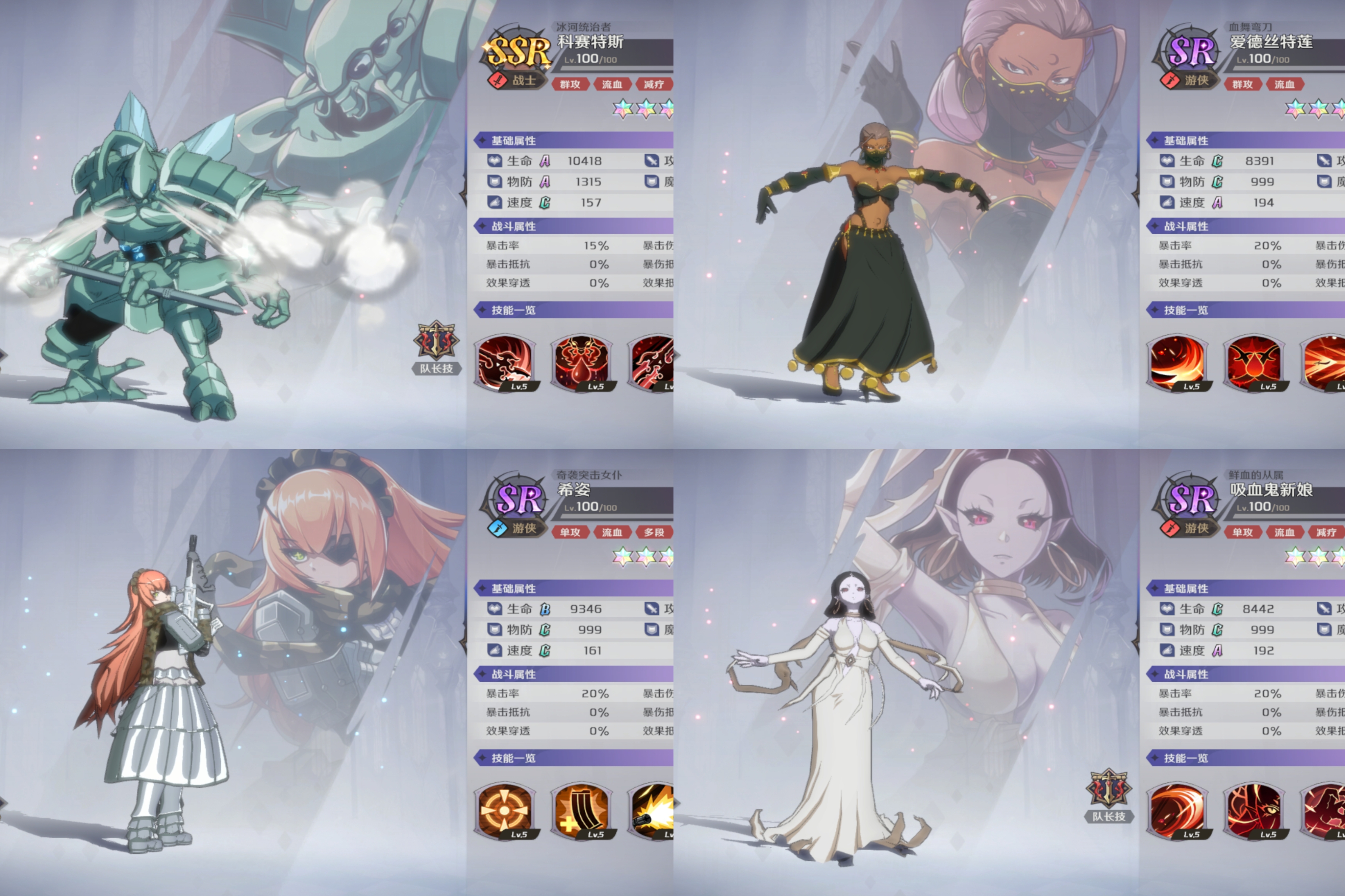 3:【流血队】搭配推荐:科塞特斯(核心)+爱德丝特莲(核心)+吸血鬼新娘(可换)+希姿(可换)。