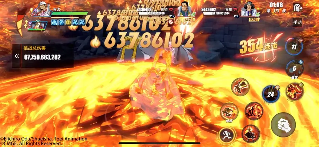 海军元帅 赤犬登场,其高额输出与持久续航能力,让岩浆果实的实力在PVE战斗中得到了完美的展示。