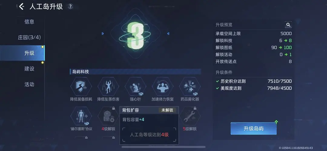 另外,升级人工岛还可解锁专属科技,完成岛屿建设任务提升科技等级,什么便捷传送、背包扩容、降低装备损耗...凡是能为你的生存环境保驾护航的科技就是好科技!通通都安排上!