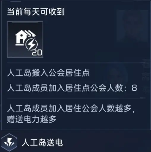 除此之外,以人工岛为单位搬入公会社区的成员,每天还可获得电力奖励补贴!