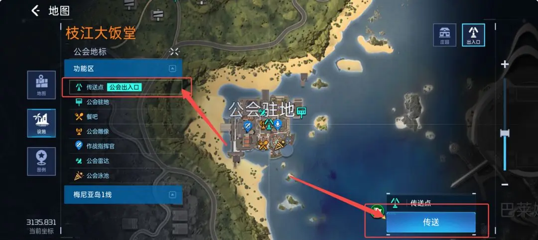 最近也有幸存者反馈找不到人工岛和公会里的传送点,扫地阿姨温馨提示:在庄园、人工岛、公会场景内打开地图可直接传送至庄园传送点,无冷却时间。