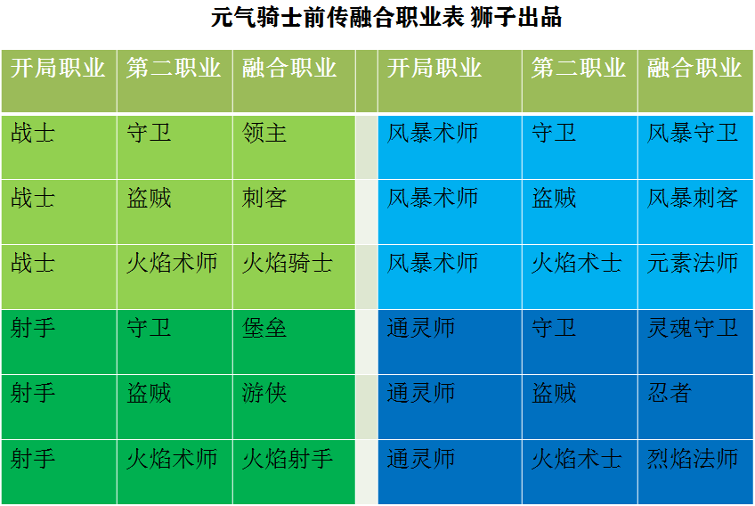 ⭐狮子整理和总结了融合职业表。提供给大家参考: