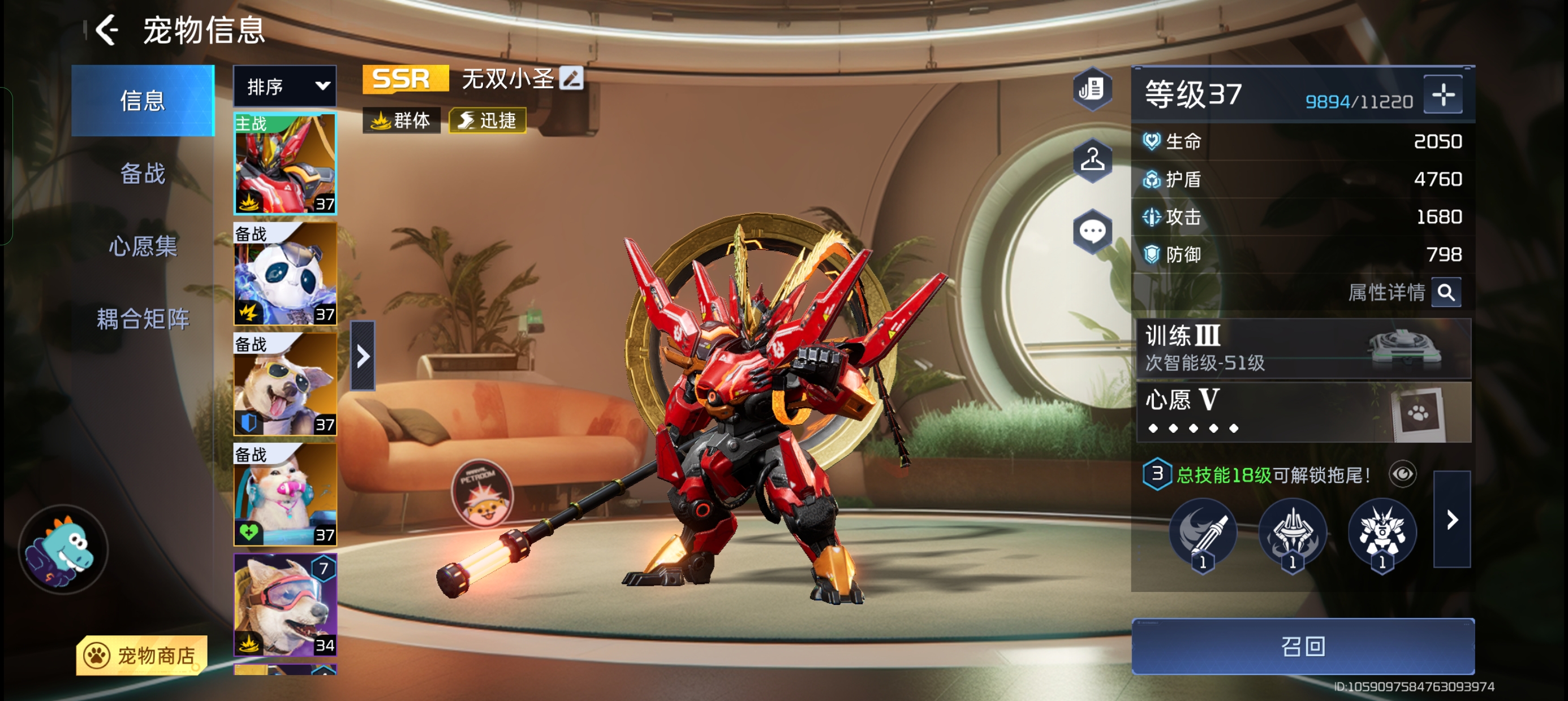 最后:另外宠物的培养全部都是以【主战】宠物为主的。其他备战宠物可以优先拉等级以及完成宠物的心愿也可以提升一定的评分。