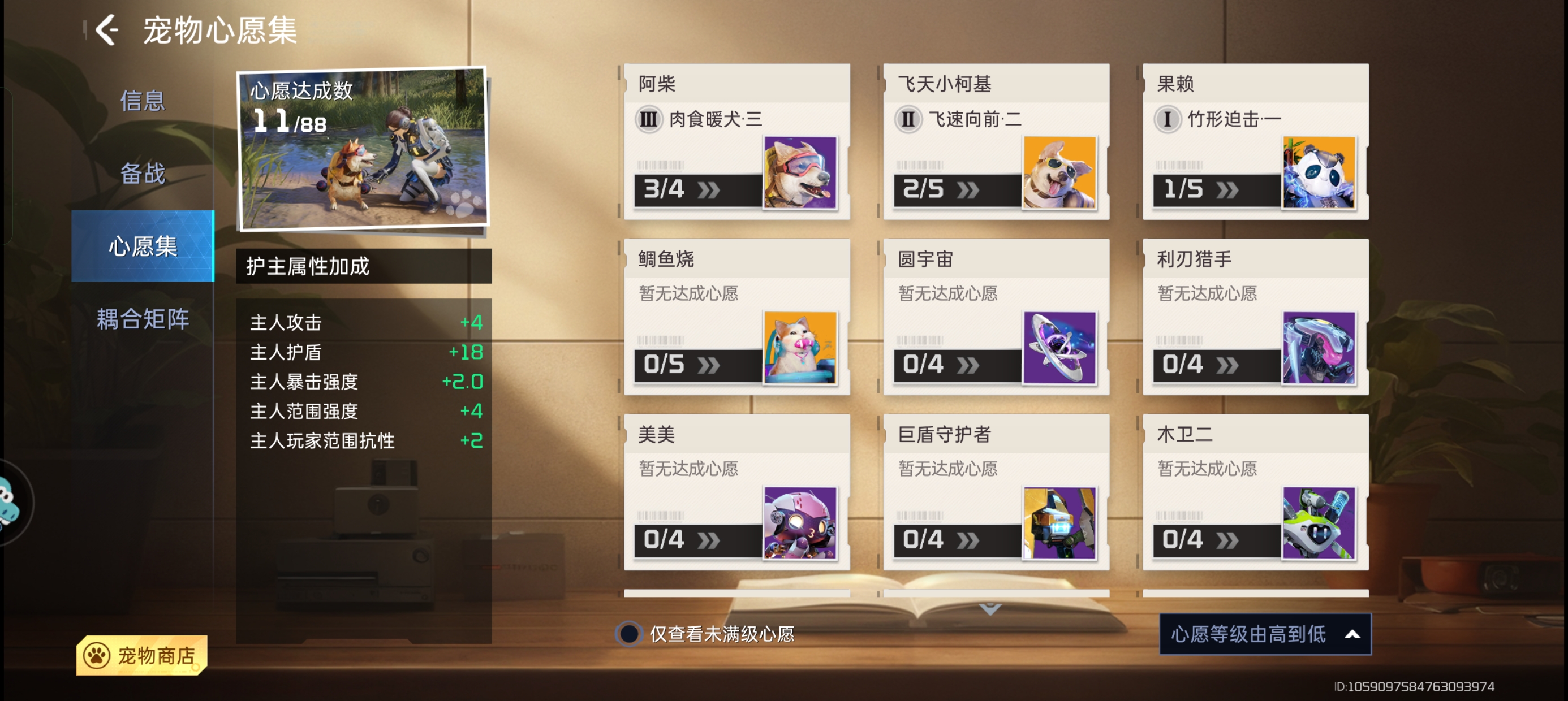 空闲的时候可以去完成每个宠物的【心愿集】也是可以获得不少战力加成的。
