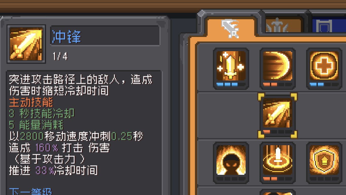 快速打击可以对单体boss造成大量的伤害,同时在没有【分裂】这个效果的时候,也可以作为主要的输出方式。而且这个技能耗蓝量非常低,前期阶段还是非常好用的。