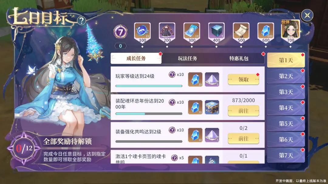 七日目标活动中做12个任务之后即可领取任务中的全部奖励,完成每日任务可获得高额稀有奖励!具体以以游戏内真实情况为准!