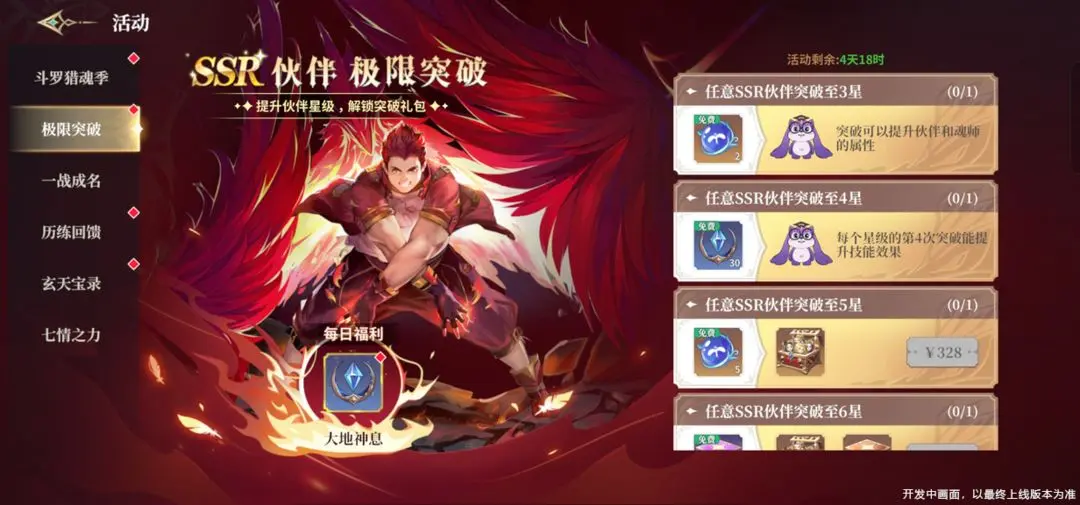 活动期间可通过培养伙伴达成对应条件,提升伙伴星级,解锁突破礼包。