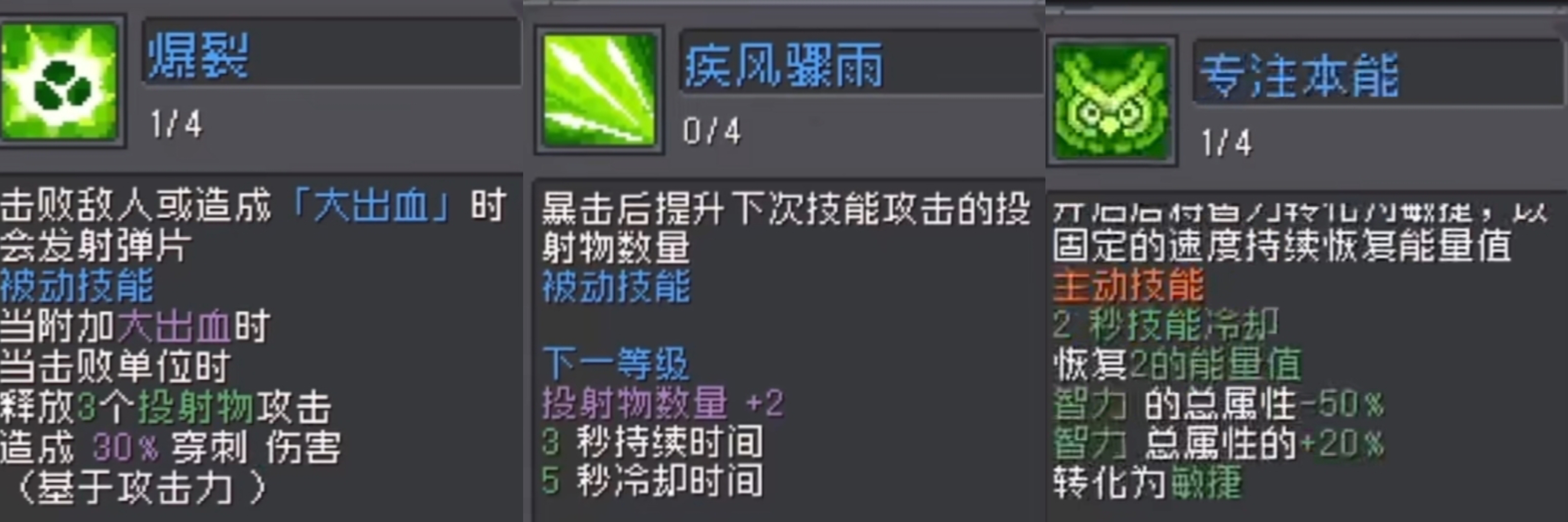 游侠栏的技能推荐:【爆裂】+【疾风骤雨】+【专注本能】。