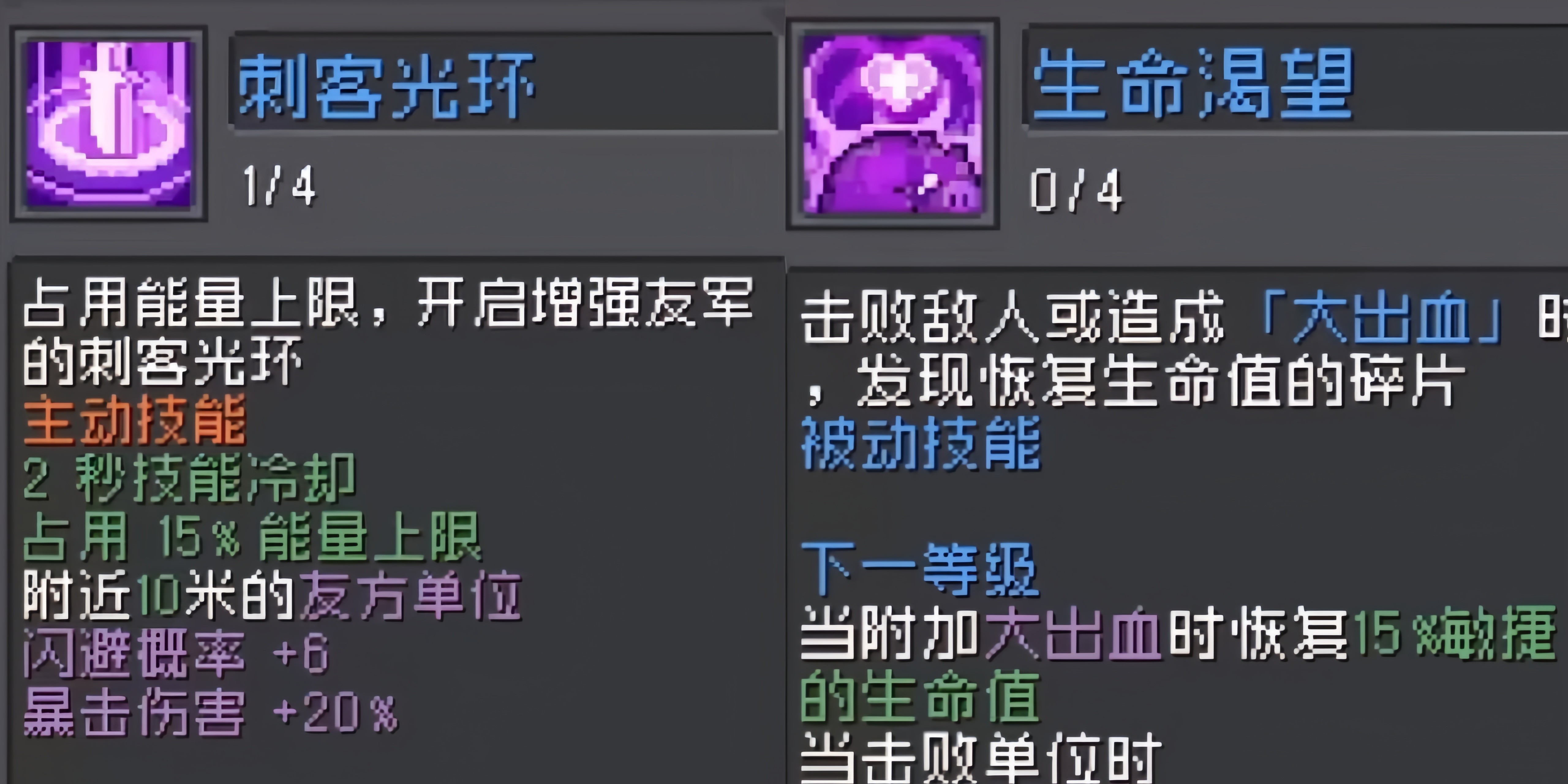 刺客光环可以提升暴击伤害输出的,生命渴望主要是维持自身的生存力。根据自己的需求来加就行。