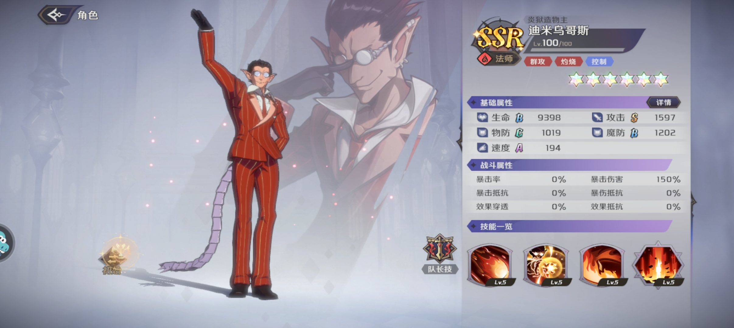 而灼烧队主要输出是来源【迪米乌哥斯】这个角色。