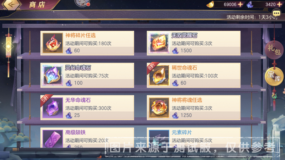 稀世命魂礼包:内含稀世命魂石*660、元宝*3280,售价328元,活动期间限购3次。
