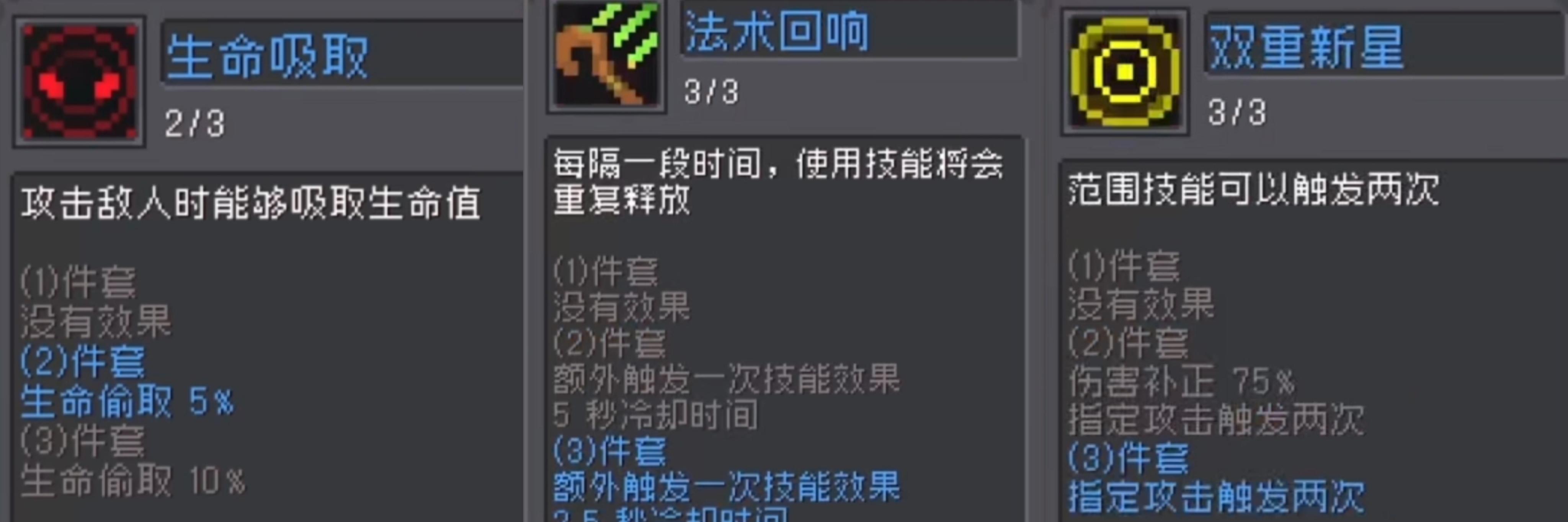 1:前期开荒【装备羁绊】推荐:生命吸取+法术回响+双重新星。